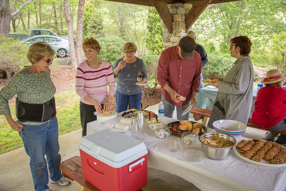 Many thanks to the Home and property owners (and friends) of Junaluska Highlands for working to beautify the community on 5 May, 2018. Following the planting of flowers, spreading of mulch, and general clean-up, a luncheon was enjoyed by the work crew. Following are some images of the work and fellowship from this event