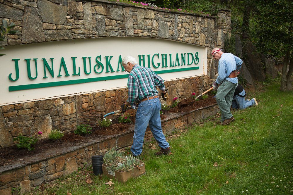 Every year we refresh the flowers and beds, clear out the brush and put down mulch. It's a lot of work but it's very rewarding. We get to enjoy the pretty flowers every time we drive in or out of the neighborhood. It's also a great time to work with our neighbors and enjoy the fruits of our labor.